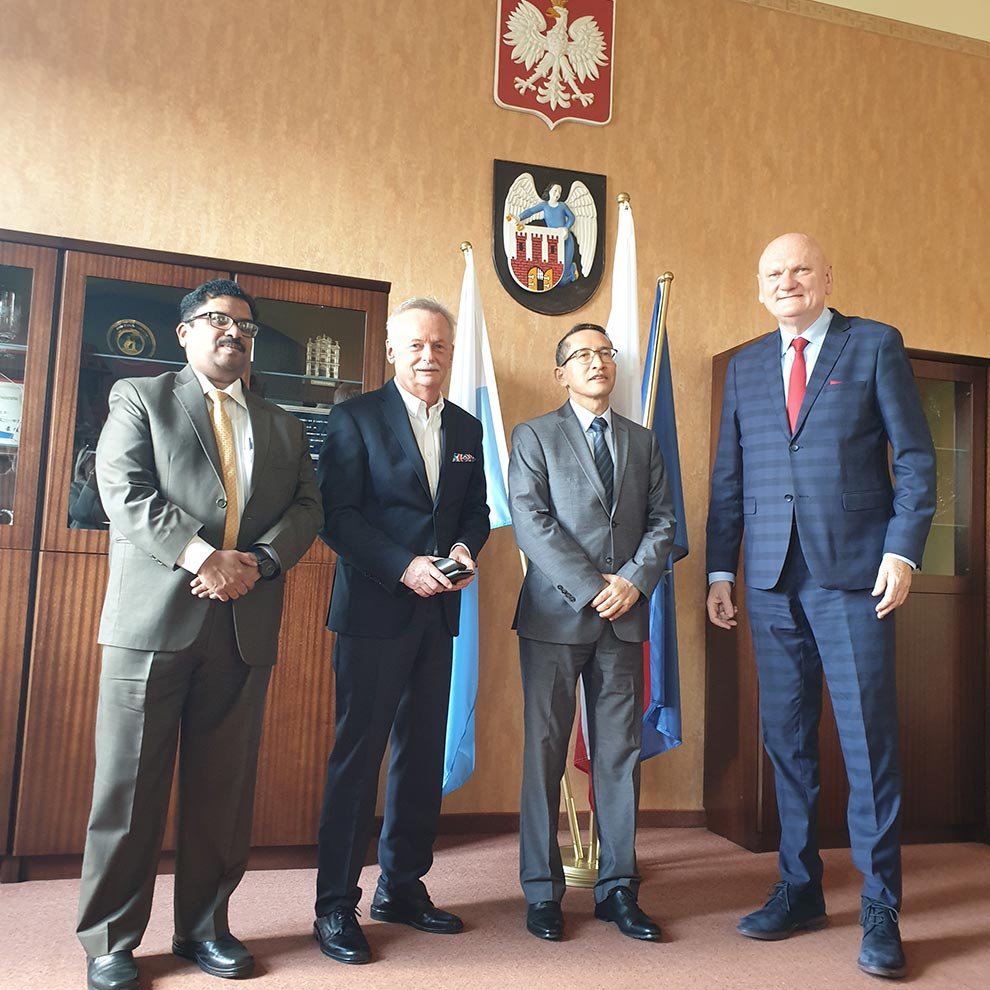 Friday was a special day for us, because TZMO was visited by His Excellency Ambassador of India to Poland Mr. Tsewang Namgyal with his wife. The Ambassador was accompanied by the First Secretary of the Embassy Mr. V.S.D.L. Surendra. The Ambassador spoke with Mr. Jarosław Józefowicz - the President of the Management Board of TZMO SA about further investments of TZMO in India, which are planned in the near future.