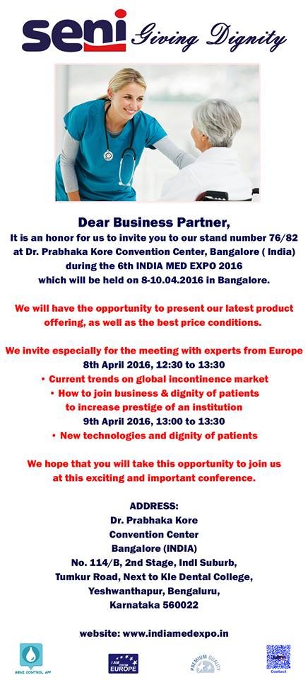 For the 1st time Seni brand was present on one of the most important trade shows in India, which is medical fair India Med Expo being held in Bengaluru between April 8th-10th, 2016.