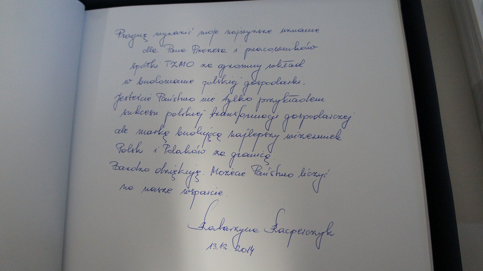 On December 13, 2014 Mrs. Katarzyna Kacperczyk - Undersecretary of Ministry of Foreign Affairs paid an official visit to TZMO SA.